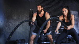 - Treinamento em circuito: Misturar exercícios de força com picos de cardio em uma mesma sessão, com pouco ou nenhum descanso entre eles. Por exemplo, fazer uma série de agachamentos e, em seguida, pular corda por um minuto. É uma ótima maneira de otimizar o tempo e manter a frequência cardíaca elevada.